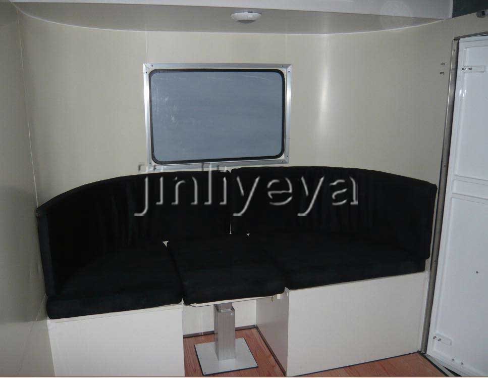 車內(nèi)寬敞而豪華,具備各種家具、車載家用電器、儲存柜、桌椅沙發(fā)等,面積一般可達(dá)40平米左右,洗碗機(jī)、全自動洗衣機(jī)、烘干機(jī)、房車專用水箱、整體浴室、衛(wèi)星天線、暖冷系統(tǒng)、網(wǎng)絡(luò)系統(tǒng)、電話機(jī)、傳真機(jī)、GPS、視聽娛樂設(shè)備、倒車監(jiān)視系統(tǒng)、防撞車警報(bào)系統(tǒng)、安全報(bào)警系統(tǒng)、我游房車將其分類等應(yīng)有盡有。