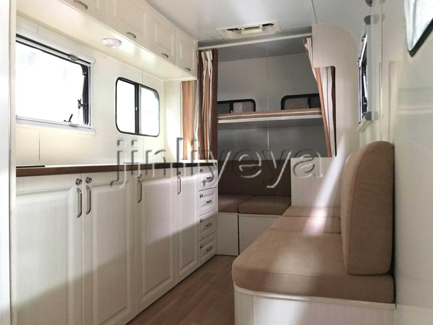 車(chē)內(nèi)寬敞而豪華,具備各種家具、車(chē)載家用電器、儲(chǔ)存柜、桌椅沙發(fā)等,面積一般可達(dá)40平米左右,洗碗機(jī)、全自動(dòng)洗衣機(jī)、烘干機(jī)、房車(chē)專(zhuān)用水箱、整體浴室、衛(wèi)星天線(xiàn)、暖冷系統(tǒng)、網(wǎng)絡(luò)系統(tǒng)、電話(huà)機(jī)、傳真機(jī)、GPS、視聽(tīng)娛樂(lè)設(shè)備、倒車(chē)監(jiān)視系統(tǒng)、防撞車(chē)警報(bào)系統(tǒng)、安全報(bào)警系統(tǒng)、我游房車(chē)將其分類(lèi)等應(yīng)有盡有。